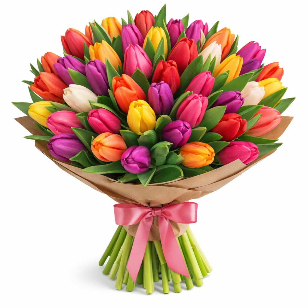Акция! Тюльпаны 35 шт. — это настоящий праздник для восприятия, наполненный живыми и яркими цветами, которые создают атмосферу тепла и счастья. Все элементы тщательно проработаны, а гармония оттенков создает уникальную атмосферу.